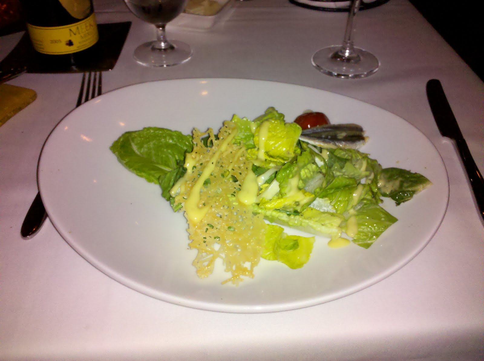 Following the duck confit I moved on to the romaine salad, which was served with hearts of palm and white anchovies. This was certainly a far cry from your run of the mill "Caesar" salad, and if nothing else it gave me the opportunity to try whole anchovies for the first time. An interesting taste which I actually enjoyed, but I'm not so sure I'll be ordering them on pizza any time soon.